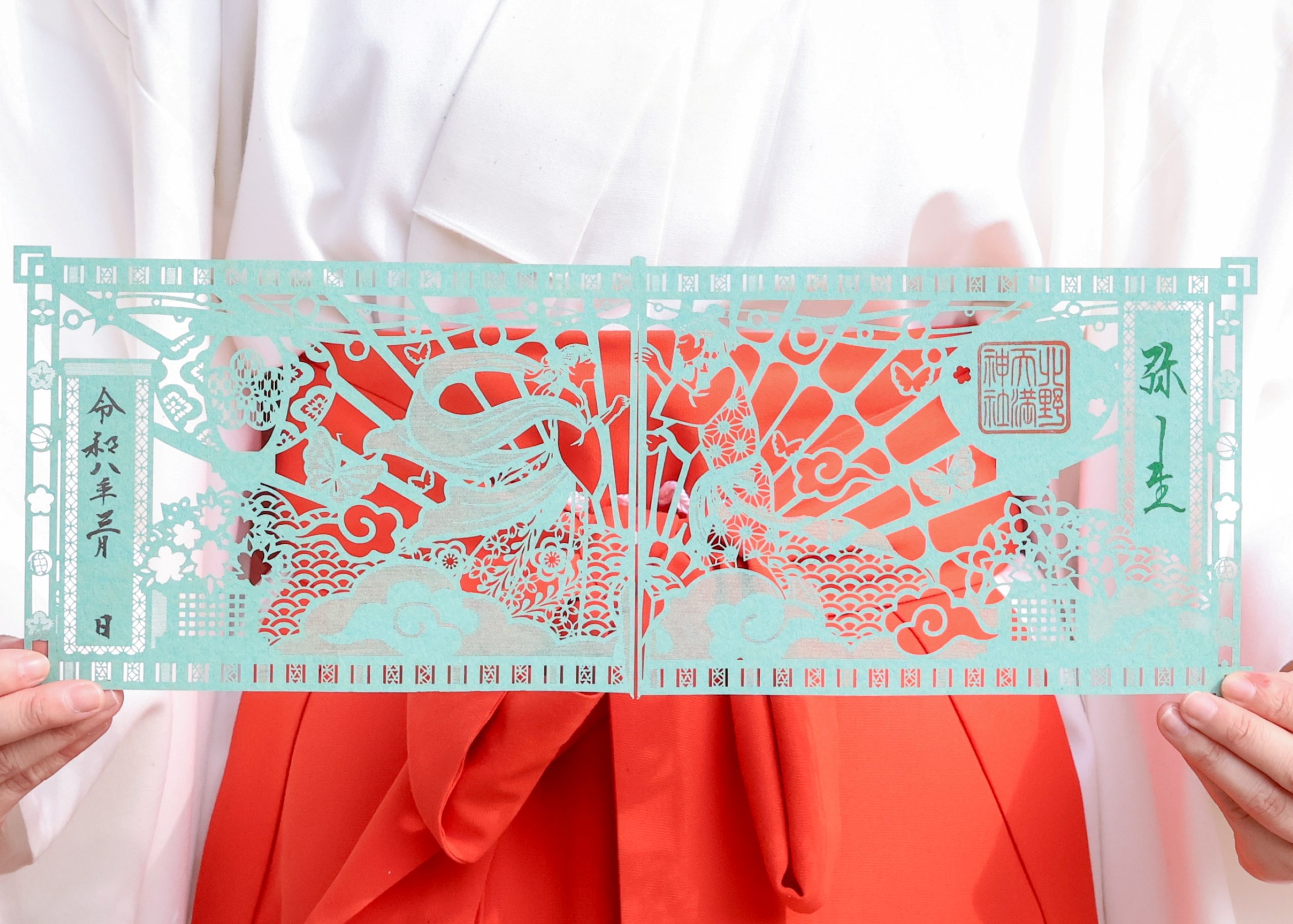令和8年3月切り絵御朱印 【天沼矛 】 今月の切り絵御朱印は、暖かな春の訪れと植物の生命力を象徴する「弥生」と揮毫し、草木が力強く成長し豊かなる大地となるように、みなさまの益々の成長を願い奉製しました。